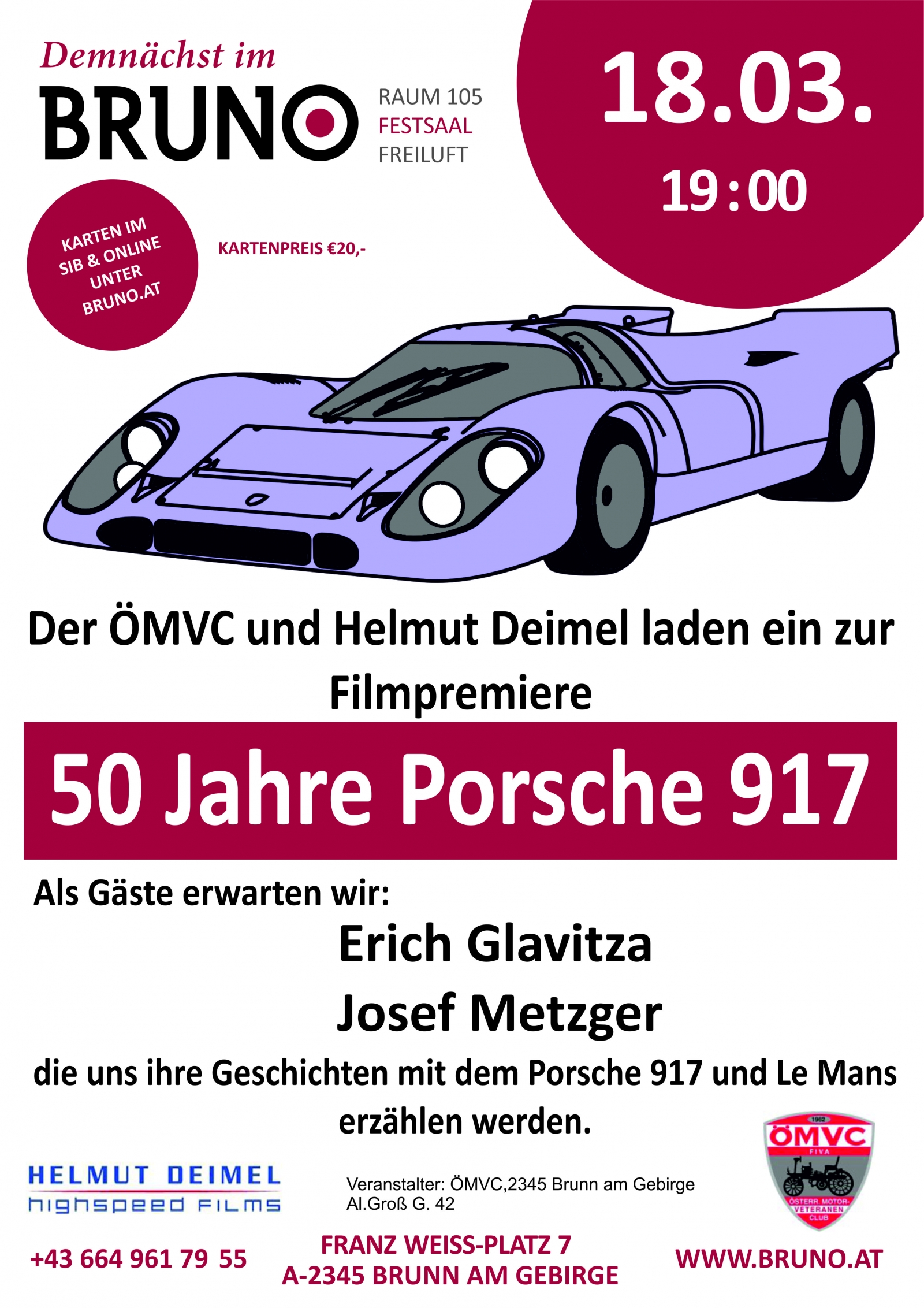 Wir müssen den geplante Filmabend mit Helmut Deimel über die Erfolge des Porsche 917 aufgrund der Corona-Situation leider verschieben.