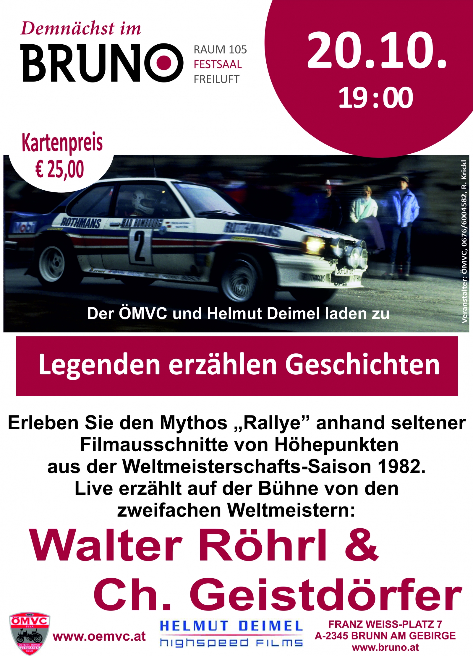 Es ist uns wieder gelungen Walter Röhrl und seinen Beifahrer Christian Geistdörfer zu einem spannenden Filmabend einzuladen.