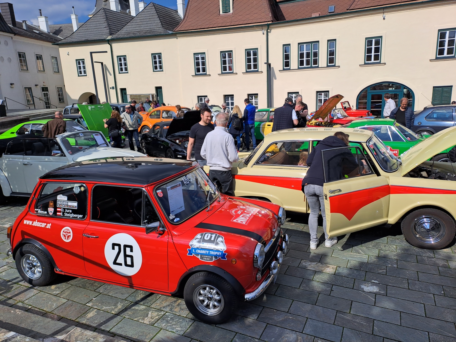 Diesmal steht dieses Treffen unter dem Moto "70 Jahre Brunn am Gebirge". Aus diesem Grund bekommt jedes Fahrzeug das zu uns kommen, dessen Baujahr zwischen 1954 und 1959 ist, eine Geschenkpackung Brunner Wein.
